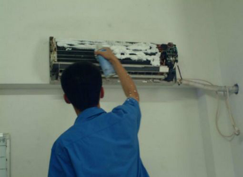 | 邯山空调维修师傅给邯山用户上门维修清洗空调。 |